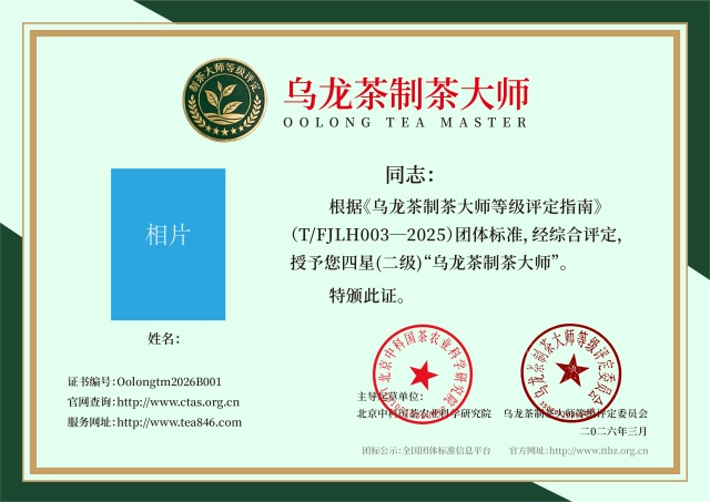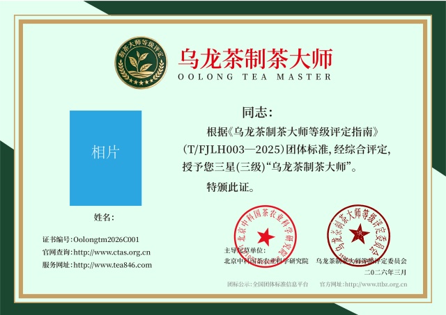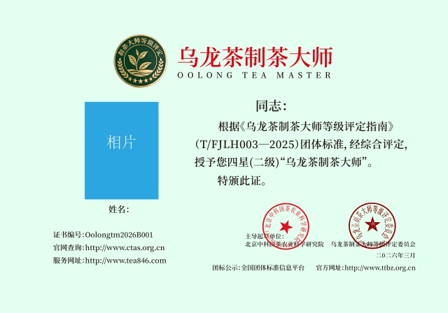 为推进中国茶产业标准化规范、建设与管理,针对细分中国茶叶制作工艺、生产流程、区域特殊性等不同因素,由北京中科国茶农业科学研究院主导起草,《乌龙茶制茶大师等级评定指南》(T/FJLH-003-2025)团体标准于2026年2月28日全国团体标准信息平台发布。这一标准的落地,意味着乌龙茶制茶技艺将从传统的“经验传承”逐步转向“科学规范”的评价体系,为行业人才评定提供权威依据。