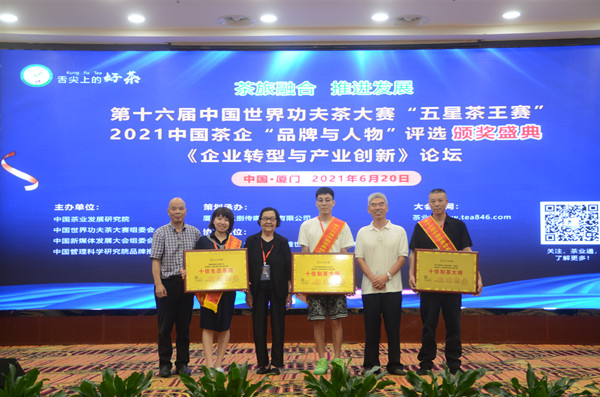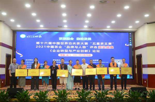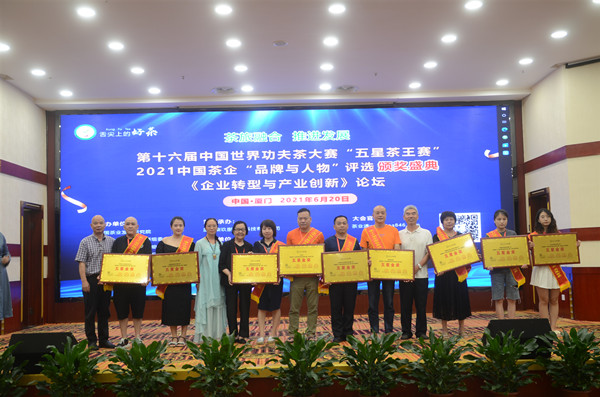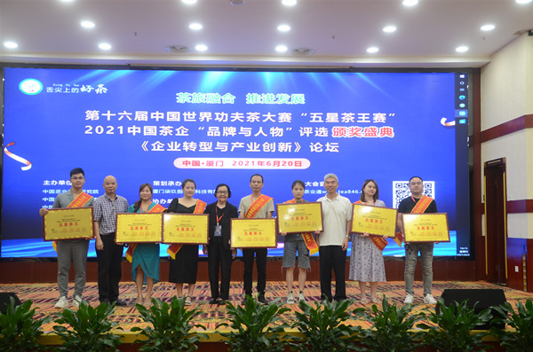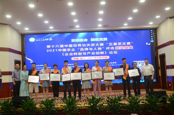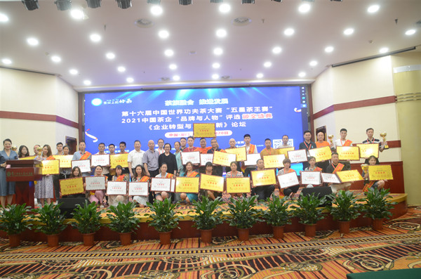 获得本届品牌企业与人物评选:“十佳绿色生态茶园”福建星窠茶业有限公司,“十佳制茶大师”广东欢伯制茶有限公司陈从欢、南平市建阳区古镇老枞茶厂陈建芳、梅州市万福春高山云雾茶专业合作社刘德营、紫金县高坑龙岭种养农民专业合作社黄建华、南平市建阳区黄坑镇梅岭茶坊雷友金等荣誉部分代表现场授牌领奖,获得本届大赛“五星茶王”、“五星金奖”、“五星银奖”、“五星优质奖”部分企业代表和个人也一一授牌亮相。