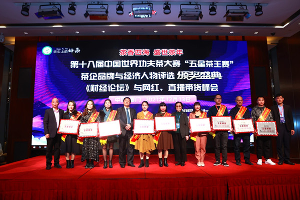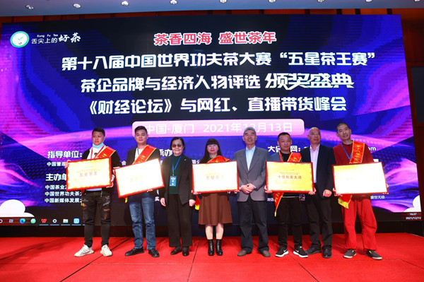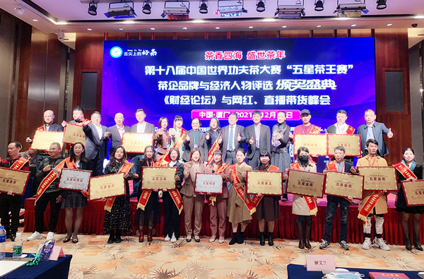 茶业通官方视频号、盛世无极抖音官方帐号在线现场直播,舌尖上的好茶·第十八届中国世界功夫茶大赛“五星茶王赛”暨茶企品牌与经济人物评选《颁奖盛典》、《财经论坛》与网红、直播带货峰会, 2021年12月13日下午在厦门日航酒店圆满谢幕!