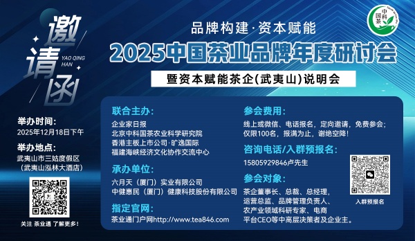 敬请关注,欢迎参加!2025中国茶业品牌年度研讨会暨资本赋能茶企说明会12月18日武夷山举办