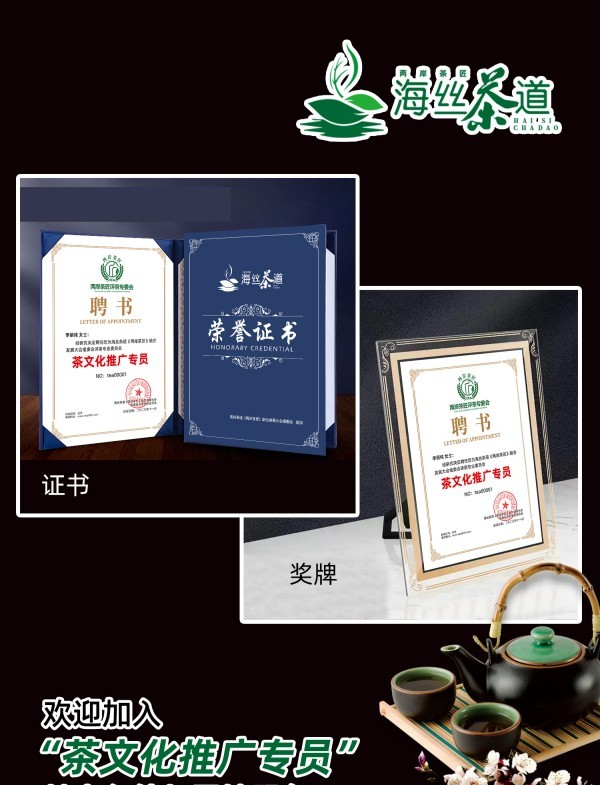 4、欢迎参加“茶文化推广专员” 基本条件与回馈服务:1、从事茶行业,遵守国家法律法规及相关政策;