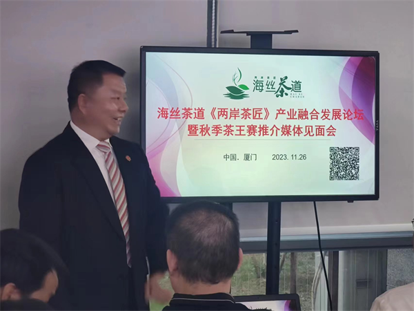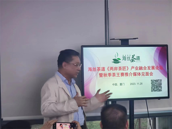 为推动国家“新丝绸之路”和“一带一路”的战略实施,弘扬中华茶文化,促进茶产业发展,彰显闽台茶文化和茶艺的风采,领略制茶、茶艺工匠风采及博大精深的茶文化,探索交流海内外高技能人才培养与合作,促进台港澳两岸三地及东南亚地区茶文化传播。由福建省委台港澳工作办公室主管福建省海峡经济技术信息中心、厦门市社会科学界联合会主管厦门市茶文化研究会及乐享茶室(厦门)科技有限公司、盛世百纳(漳州)信息科技有限公司等单位、企业共同发起海丝茶道《两岸茶匠》产业融合发展论坛将于2023年12月在厦门召开,品牌评选、项目对接、优品推介、乡村振兴等相关活动同步进行,首届《两岸茶匠》茶王赛开始全国征集,为了活动更加精彩,扩大知名度,提升影响力,海丝茶道《两岸茶匠》产业融合发展论坛暨2023两岸茶匠秋季茶王赛推介媒体见面会于2023年11月26日下午在厦门软件园二期观日路18号“乐享茶室”总部召开。