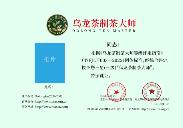 为推进中国茶产业标准化规范、建设与管理,针对细分中国茶叶制作工艺、生产流程、区域特殊性等不同因素,由北京中科国茶农业科学研究院主导起草,《乌龙茶制茶大师等级评定指南》(T/FJLH-003-2025)团体标准于2026年2月28日全国团体标准信息平台发布。这一标准的落地,意味着乌龙茶制茶技艺将从传统的“经验传承”逐步转向“科学规范”的评价体系,为行业人才评定提供权威依据。