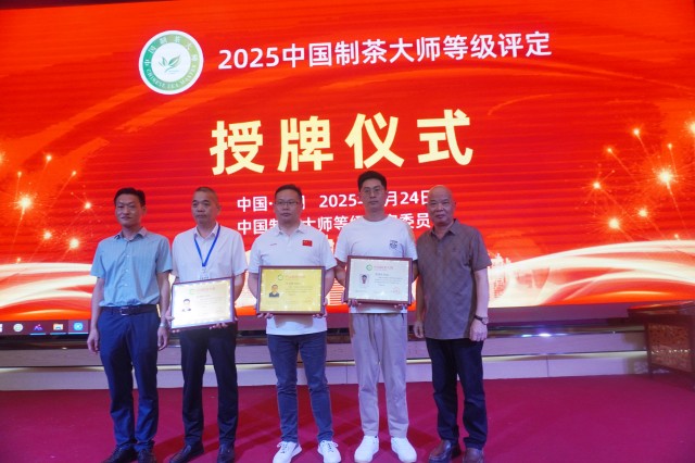 图为授牌颁发五星林碧峰、汪文锋和四星黄进凤“中国制茶大师”。