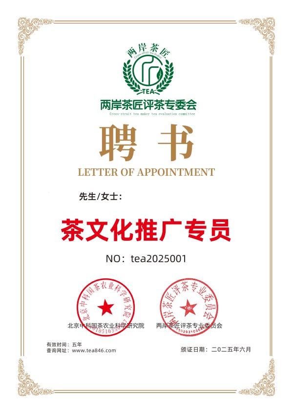 1、凡参加本次茶王赛企业或个人,参评单位获奖者莅临现场授牌颁奖,有机会免费聘任五年期“茶文化推广专员”(已领取“聘书”不重复颁发)。