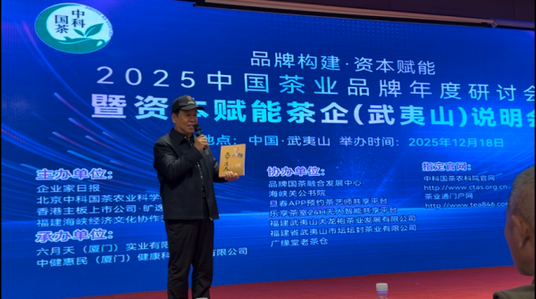以“品牌构建·资本赋能”为主题,2025中国茶业品牌年度研讨会暨资本赋能茶企(武夷山)说明会于2025年12月18日下午在世界乌龙茶、红茶发源地武夷山泓林大酒店成功举办。