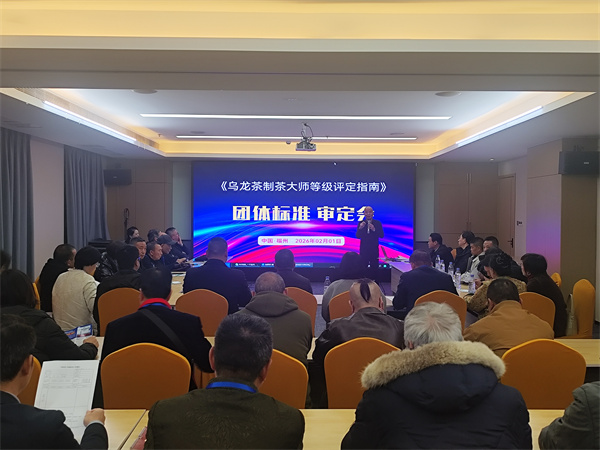 为推进中国茶产业标准化规范、建设与管理,针对细分中国茶叶制作工艺、生产流程、区域特殊性等不同因索,由中健惠民(厦门)健康科技股份有限公司提出、北京中科国茶农业科学研究院、六月天(厦门)实业有限公司主要起草,福建省联合釆购协会、福建海峡经济文化协作交流中心归口,《乌龙茶制茶大师等级评定指南》T/FJLH 003-2005团体标准2025年5月份获准立项,经过8个多月的市场调研、广泛征集,反复论证,于2026年2月1日在福州举办“乌龙茶制茶大师等级评定”团体标准专家审定会,莅临有福建省联合釆购协会执行会长聂永强、福建海峡经济文化协作交流中心主任黄玉林、北京中科国茶农业科学研究院执行院长卢劲、以及起草单位负责人、企业代表、起草人:中健惠民(厦门)健康科技股份有限公司卢龙、武夷山海曦生态茶业有限公司吴章富;福建省安溪茶业职业技术学校陈贵章;武夷山市广缘天韵茶业有限公司赵广霞;武夷山逸如阁茶业集团有限公司范凤兰;武夷山十九道正山茶业有限公司王建文;福建新征程茶业有限公司、福州市晋安区苏龙海技能大师工作室苏龙海;厦门市同安区恒利茶叶有限公司高树足;潮州维鸿农业发展有限公司黄维坚;武夷山市岩土茶业有限公司吴明珠;酒香网(上海)科技有限公司孟庆宝;建瓯市印象娘家茶馆吴小珠;武夷山市龍仙岩茶厂黄荣韶;武夷山市似曾相识茶业有限公司王金信;宋丛荟茶业郑惠丽;福建省安溪县新晋茶叶有限公司李财宝;福建武夷山市醉清尘茶业有限公司郑旭雍;南平市建阳区黄坑映真茶厂徐正祥;厦门忆上茗实业有限公司郭建国、李丽纯;漳州市芊禧阁商贸有限公司陈艳丽;盛世柚都(福建)农业科技有限公司蔡小河、厦门柒玖捌传媒科技有限公司卢煌;盛世百纳(漳州)信息科技有限公司卢双福;厦门星马进岀口有限公司郑培植;山东优艺点数字科技有限公司聂永真;乐享茶室(厦门)科技有限公司杨军辉、王晔等40多位来宾一同参会。